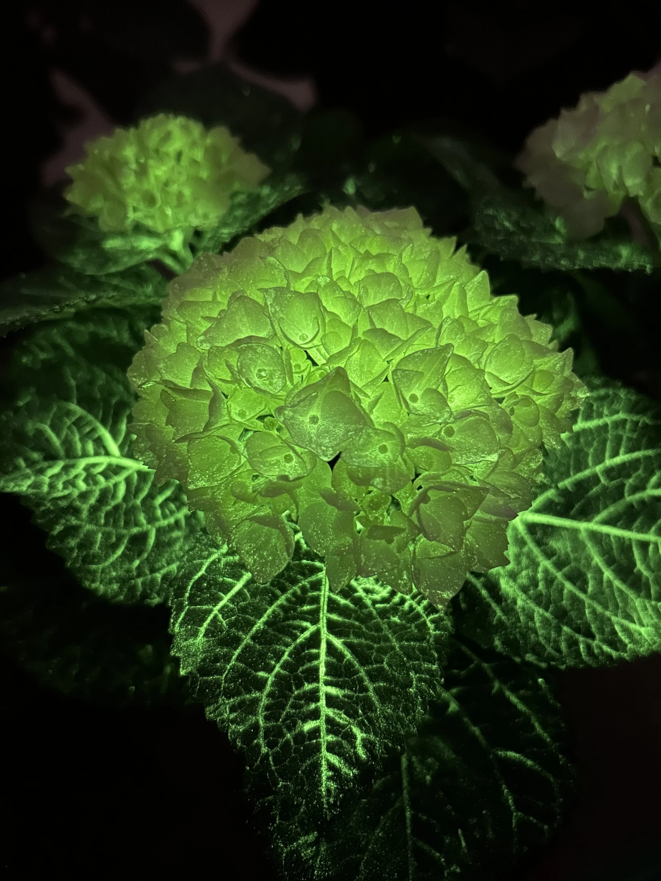 Onze eigen hortensia productontwikkelingsskills werden uit de kast getrokken. Na een paar weken testen kon de vlag uit en hadden we onder de knie hoe we een glow in the dark hortensia konden maken (want hij bestaat dus echt he!)... Nu nog goed overbrengen!